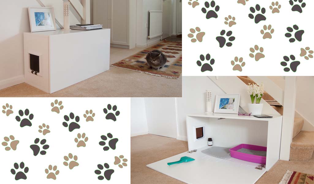 Odcisk łapy wycięty w dolnej części skrzyni pełni rolę wejścia do dyskretnej kuwety.