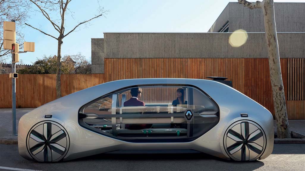 Renault EZ-GO jest jednocześnie pojazdem i usługą. Ten pojazd autonomiczny o napędzie elektrycznym został zaprojektowany do indywidualnego przewozu lub transportu małych grup. Umożliwia wyruszenie w drogę ze stacji wynajmu lub z miejsca zgeolokalizowanego przez aplikację.