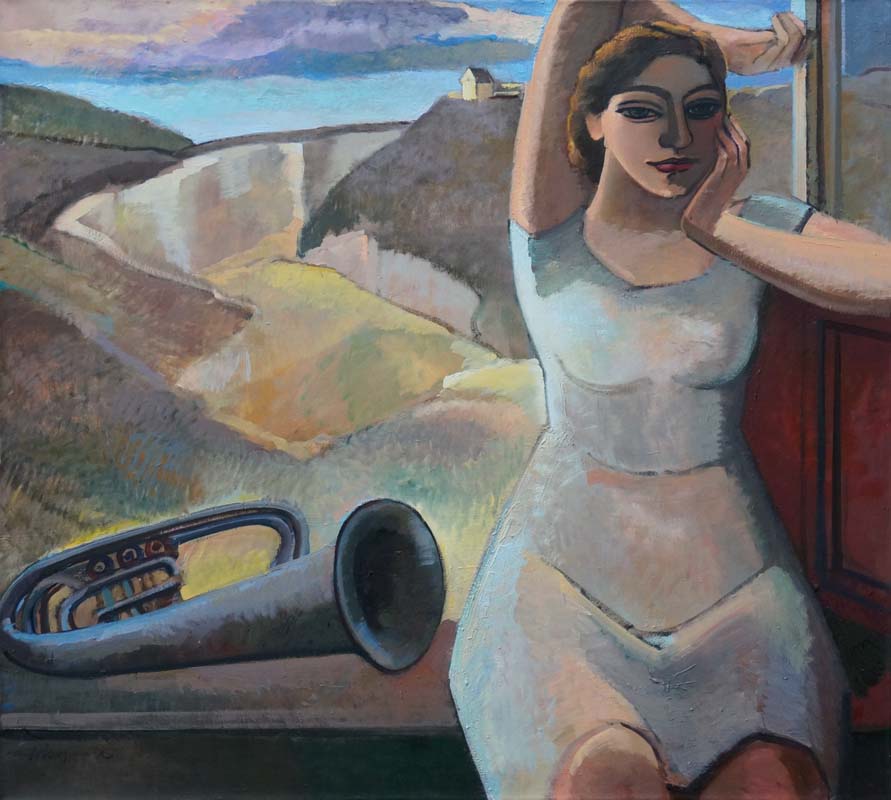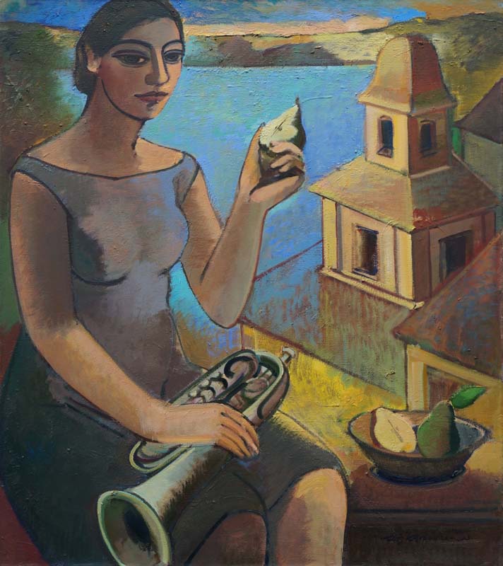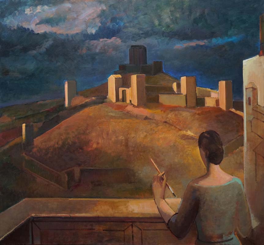 Leżąca z ciemną górą, olej na płótnie, 75x85cm