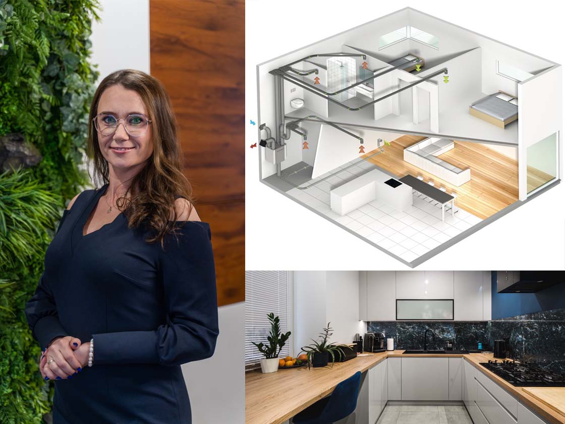 - Już na etapie projektu należy zaplanować kanały tak, aby powietrze przemieszczało się od sypialni do łazienek i z salonu do kuchni. Ważne, aby kanały do wentylacji tworzyły system o minimalnej liczbie elementów składowych, które dzięki odpowiedniej wysokości będzie można łatwo ukryć, nie zakłócając przy tym estetyki wnętrza – wyjaśnia architektka.