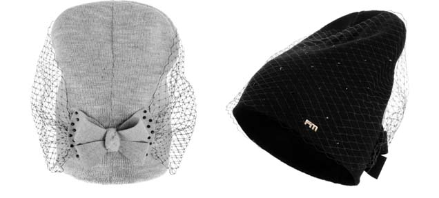 Fot. Prima Moda. Oryginalne, zimowe czapki damskie z woalką CARRARA.
