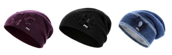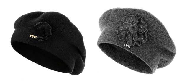 Fot. Prima Moda. Wełniane berety damskie na zimę. Modele ALINO i MALCHINO z atrakcyjnymi zdobieniami z przodu.