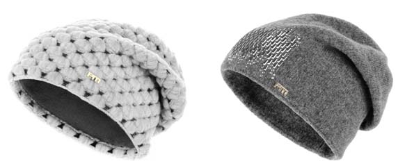 fot. Prima Moda. Czapka damska o grubym splocie GENGA oraz model ze srebrną aplikacją NICELLI.