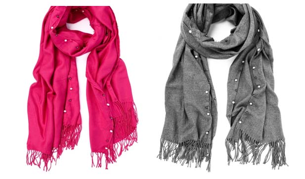 Fot. Prima Moda. Damskie szaliki zimowe z ozdobnymi aplikacjami.