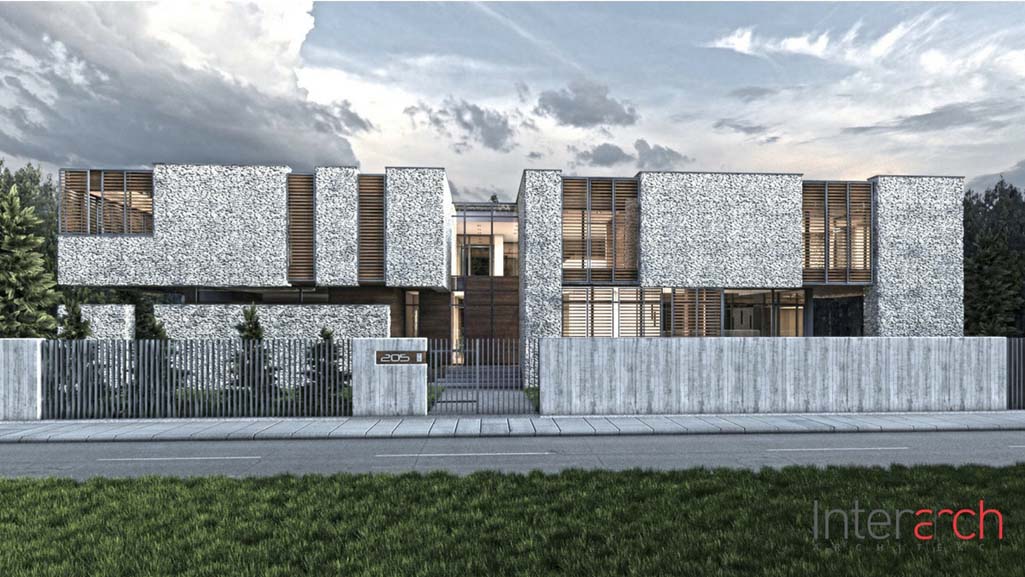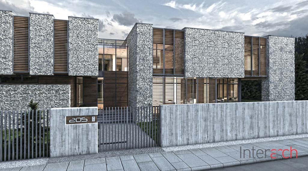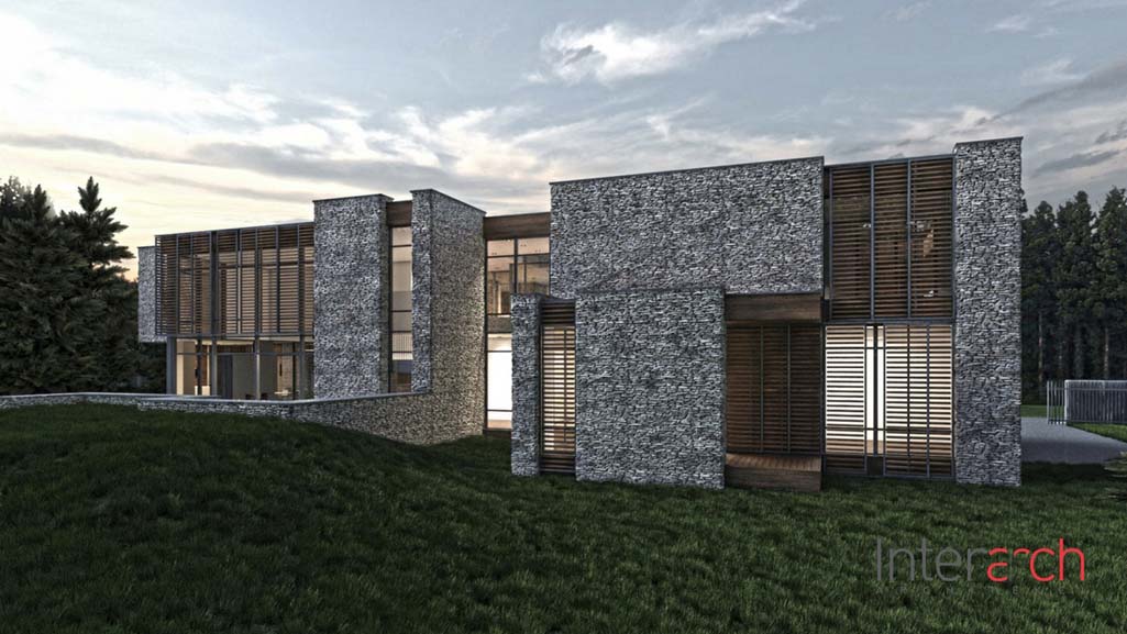 Ten kamienny dom, wtopiony w otulinę Puszczy Kampinoskiej, to dzieło warszawskiej pracowni INTER-ARCH Architekci. Jej zespół, cieszący się dużym zaufaniem inwestorów, stworzył innowacyjną bryłę odzwierciedlającą ważne trendy społeczne XXI wieku. Od frontu odgradza ona mieszkańców od pobliskiej ulicy, hałasu i spojrzeń sąsiadów. Od drugiej strony pozwala na jak najpełniejszy ich kontakt z przyrodą.