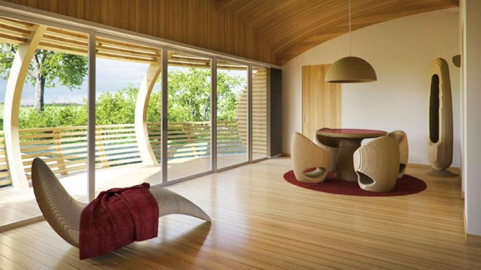 Wykonane zostało z materiałów wtórnych, a mianowicie z drewna oraz aluminium pochodzących z recyklingu. Dewloper nazwał te luksusowe mieszkania WaterNest, czyli Wodne Gniazdo. Jest to całkiem spore gniazdko, gdyż oferuje 100 metrów kwadratowych powierzchni mieszkalnej i to mocno ekskluzywnej.