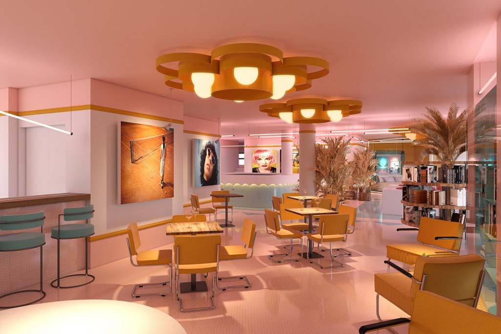Hotel Paradiso Ibiza Art wyróżnia się designem wnętrz, w których dominują soczyste, sorbetowe odcienie niosące ze sobą powiew retro. Na hiszpańskiej wyspie trudno znaleźć hotel, który lepiej prezentowałby się na Instagramie. Wnętrze zostało zaprojektowane przez studio Miami Modern oraz Ilmiodesign.