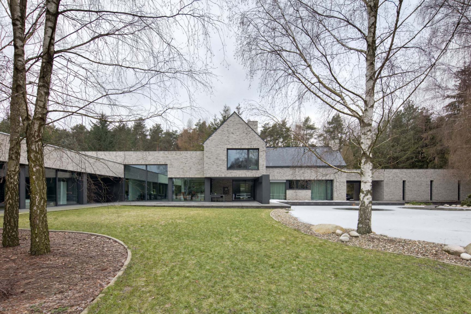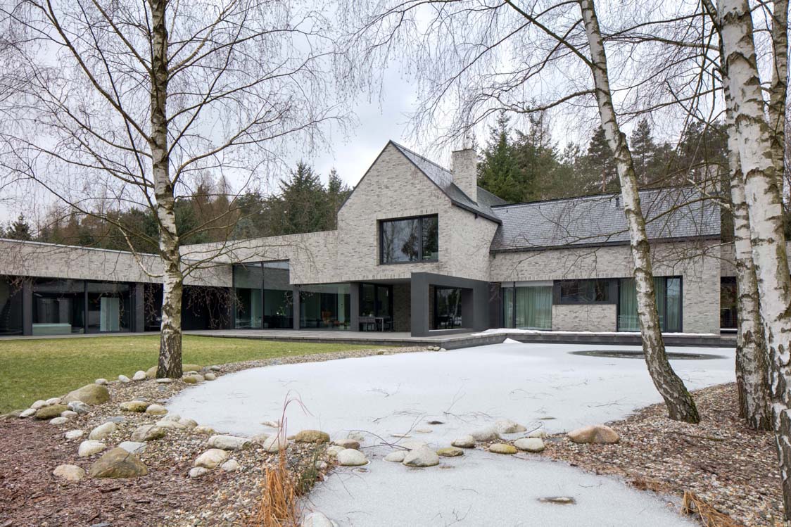 Na działce liczącej 4 000 m² powstał dom o bardzo wyraźnie zarysowanej, rustykalnej architekturze, w którą architekt wplatał zarówno nowoczesne, jak i odważne elementy. Dom powstał pod Łodzią. Centralna bryła budynku nawiązuje do typowej Polskiej Chaty, niemal stodoły – która miała wyglądać tak, jakby zawsze tam stała. Całość została otoczona nowoczesnymi bryłami z płaskim dachem. Dachy wzajemnie się przeplatają, tworząc długi, tytułowy - horyzontalny układ brył. Geometria budynku została ściśle dopasowana do topografii działki, co miało decydujący wpływ na strukturę budynku oraz jej ostateczną, mocną formę. Całość opiera się na silnej zależności pomiędzy budynkiem a oplatającym go krajobrazem.