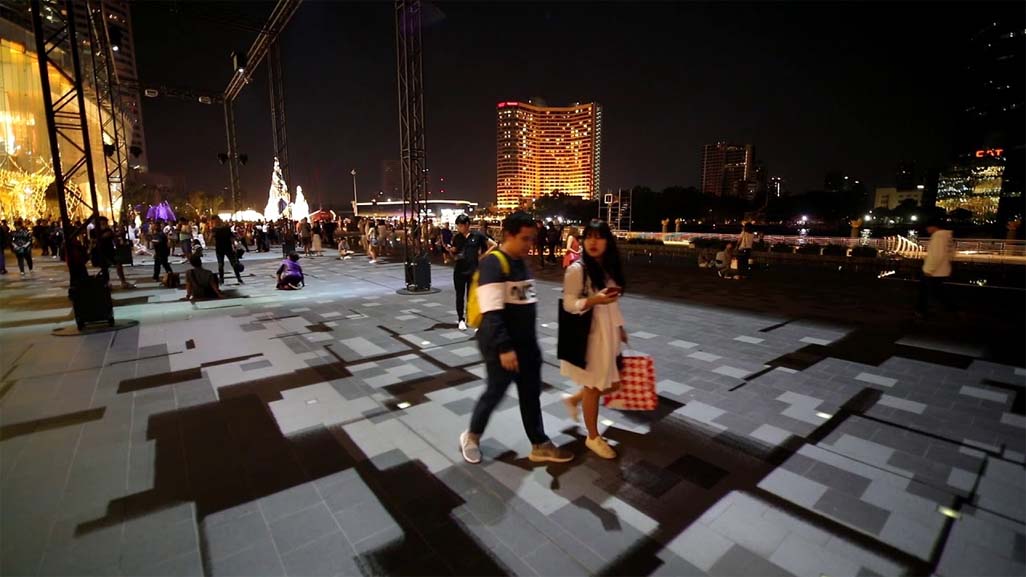 „Magic Carpets Bangkok” jest ogromnym dywanem świetlnym o wymiarach 60 metrów x 14 metrów, który pokrywa plac w przedniej części Iconsiam River Park w stolicy Tajlandii (Bankoku).