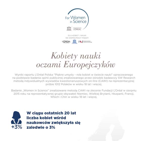 Z drugiej strony może to zastanawiać, bo przecież Polka, Maria Skłodowska-Curie, otrzymała dwukrotnie Nagrodę Nobla. Istotne jest pewnie, iż dopiero w ostatnim dwudziestoleciu Polki coraz liczniej zdobywają stopnie i tytuły naukowe oraz zajmują najwyższe stanowiska na uczelniach i instytutach naukowych. Biorąc zatem pod uwagę historię, kulturę oraz wyniki raportu, tym bardziej powinniśmy podejmować działania mające na celu zmianę stereotypów i wspierać kobiety w rozwijaniu badań i osiąganiu kolejnych sukcesów naukowych – mówi prof. Ewa Łojkowska, przewodnicząca Jury Programu L’Oréal Polska Dla Kobiet i Nauki.