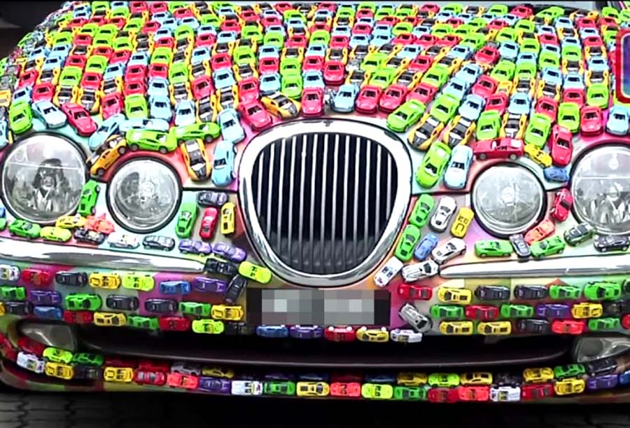 Jaguar S – Type z Malezji powinien otrzymać tytuł samochodu o najbardziej dziwacznym wyglądzie na świecie. Niecodziennie wyglądająca limuzyna pokryta tysiącem miniaturkowych samochodów (zabawek) szybko zyskała popularność na portalach społecznościowych. Jednakże, nikt nie wie dlaczego właściciel zdecydował się na spersonalizowanie swojego auta w taki sposób.