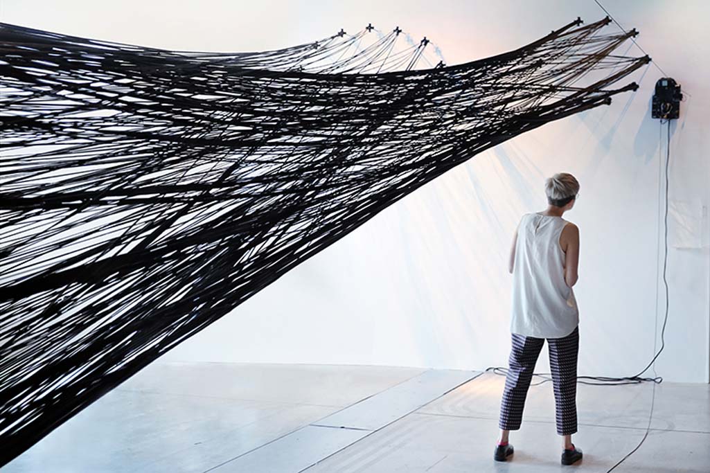 Zwinne roboty, które wspinają się po ścianach i sufitach pracują zgodnie ciągnąc włókniste filamenty w przestrzeni. W ten sposób powstaje misterna struktura. Według architekta i dyrektora instytutu ICD Achima Mengesa to dopiero początek odkrywania architektonicznego potencjału robotów. Za główną zaletę tej metody uznał on rozszerzenie możliwości projektowania. W praktyce mniejsze roboty są tańsze i pracują bardziej efektywnie w porównaniu z dużym robotem. Tworzą one sprawny i niezawodny system.