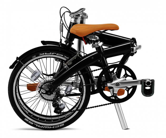 Rower waży zaledwie 11 kg, a jego rama wykonana z wysokiej jakości aluminium posiada skórzane siodełko oraz osiem przerzutek i 20 – calowe koła. Łańcuch został pokryty teflonem, więc nie trzeba go oczyszczać z rdzy i brudu. Design pojazdu można określić jako nowoczesny i stylowy – szara, matowa konstrukcja ozdobiona srebrnymi detalami i skórzanymi elementami w kolorze koniaku sprawia, że model dobrze się prezentuje.