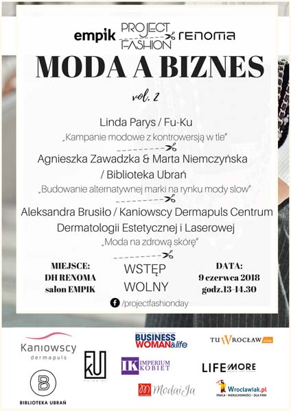 9. czerwca 2018 r. (sobota) we Wrocławiu odbędzie się konferencja o tematyce modowej, będącej częścią wydarzenia Project Fashion. Organizatorem jest agencja modelingowa Spot Management, DH Renoma we Wrocławiu oraz salon Empik w Renomie.