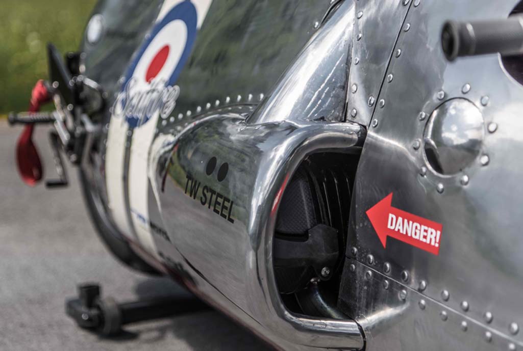 Model posiada 90 cm wysokości, a szerokość przedniej ramy została zwiększona do 20 cm. Sylwetka została nieco skrócona, a elektronika rozmieszczona nieco inaczej niż w standardowych motocyklach tej marki. Pojazd został wykonany z ogromną precyzją i dbałością o nawet najmniejszy detal. Niektóre z detali są wprost wyjęte z kokpitu oryginalnego samolotu „Spitfire”.