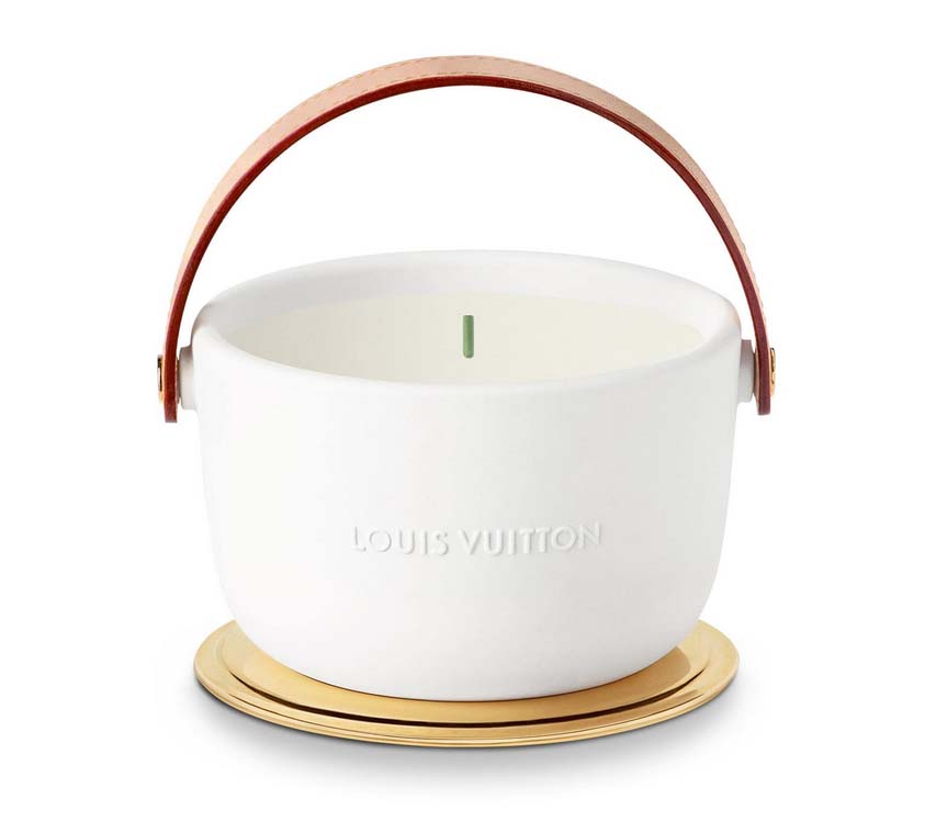 Po stworzeniu kompozycji perfum dla Louis Vuitton w 2016 r., mistrz perfumiarstwa Jacques Cavallier Belletrud postanowił rozwinąć gamę świec dla domu mody, kreując dla każdej świecy inny, unikatowy zapach. Na przykład L’Air du Jardin pachnie nutami róż, Île Blanche przywodzi na myśl słoneczne lato i świeży zapach bawełny,