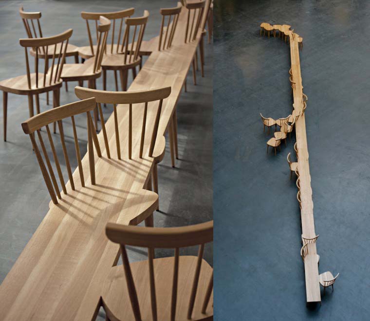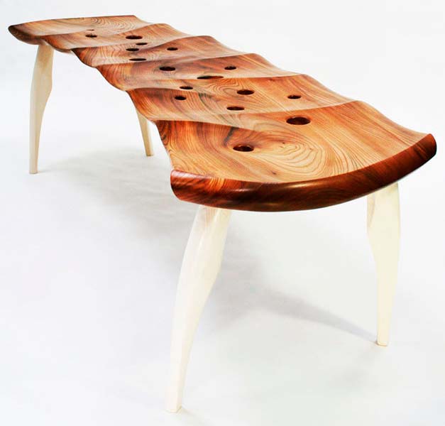 Z kolei powyższa ławeczka, zaprojektowana przez Joy’a Charbonneau i Dereka McLeoda, jest mieszanką technologii i ręcznego rzemieślnictwa.