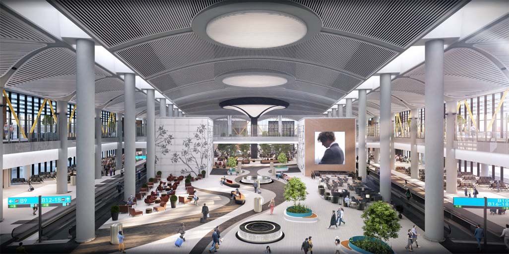 Na 32 000 metrach kwadratowych zostaną rozmieszczone punkty gastronomiczne reprezentujące kuchnię orientalną i europejską. Wnętrze terminalu jest wypełnione światłem słonecznym. Jasne, komfortowe sofy dobrze komponują się z drewnianą podłogą tworząc ciepłe, przytulne wnętrze. Podróżnych przywita czarny fortepian, grający melodie. Rozległa przestrzeń obejmuje miejsca dla 765 pasażerów, restauracje i kawiarnie oraz muzeum. Znajdą się tam eksponaty i dzieła artystyczne wypożyczone z Muzeum Sztuki Współczesnej w Instambule.