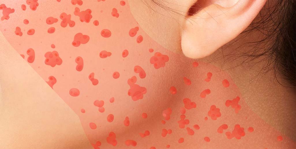 Jednym z objawów reakcji alergicznej jest pokrzywka. Swędząca skóra pokryta krostkami, często zaczerwieniona może być objawem kontaktu zewnętrznego z alergenem lub reakcji alergicznej występującej po spożyciu pokarmu, na który pacjent jest uczulony. Objawy skórne pojawiają się, ponieważ organizm uwalnia histaminę – substancję chemiczną podrażniającą skórę i powodująca pokrzywkę. Objawy skórne w postaci pokrzywki nie zawsze są objawem alergii. Wysokie lub niskie temperatury oraz stres również mogą powodować pokrzywkę, więc dla pewności skonsultuj się z alergologiem.