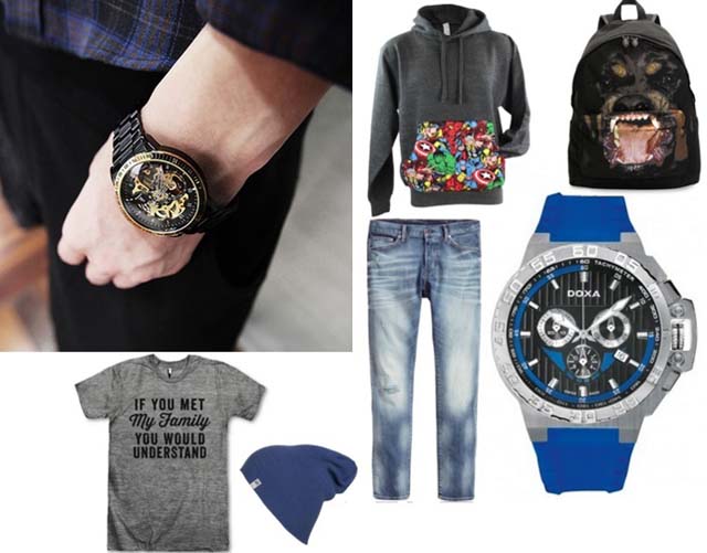 zegarek: Doxa, bluza: etsy; T-shirt: House; spodnie: H&M; plecak: www.zalando.pl; czapka: New Yorker