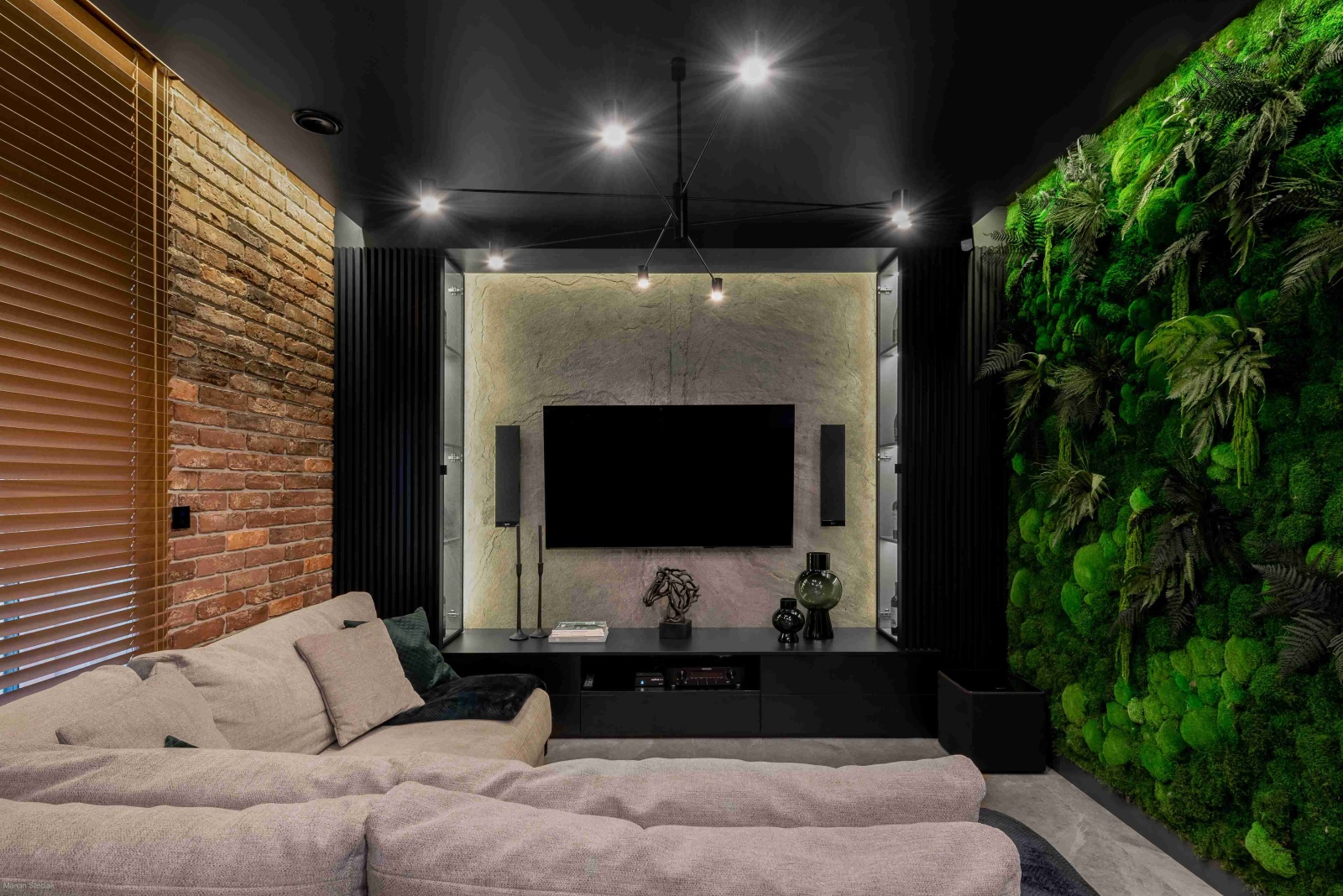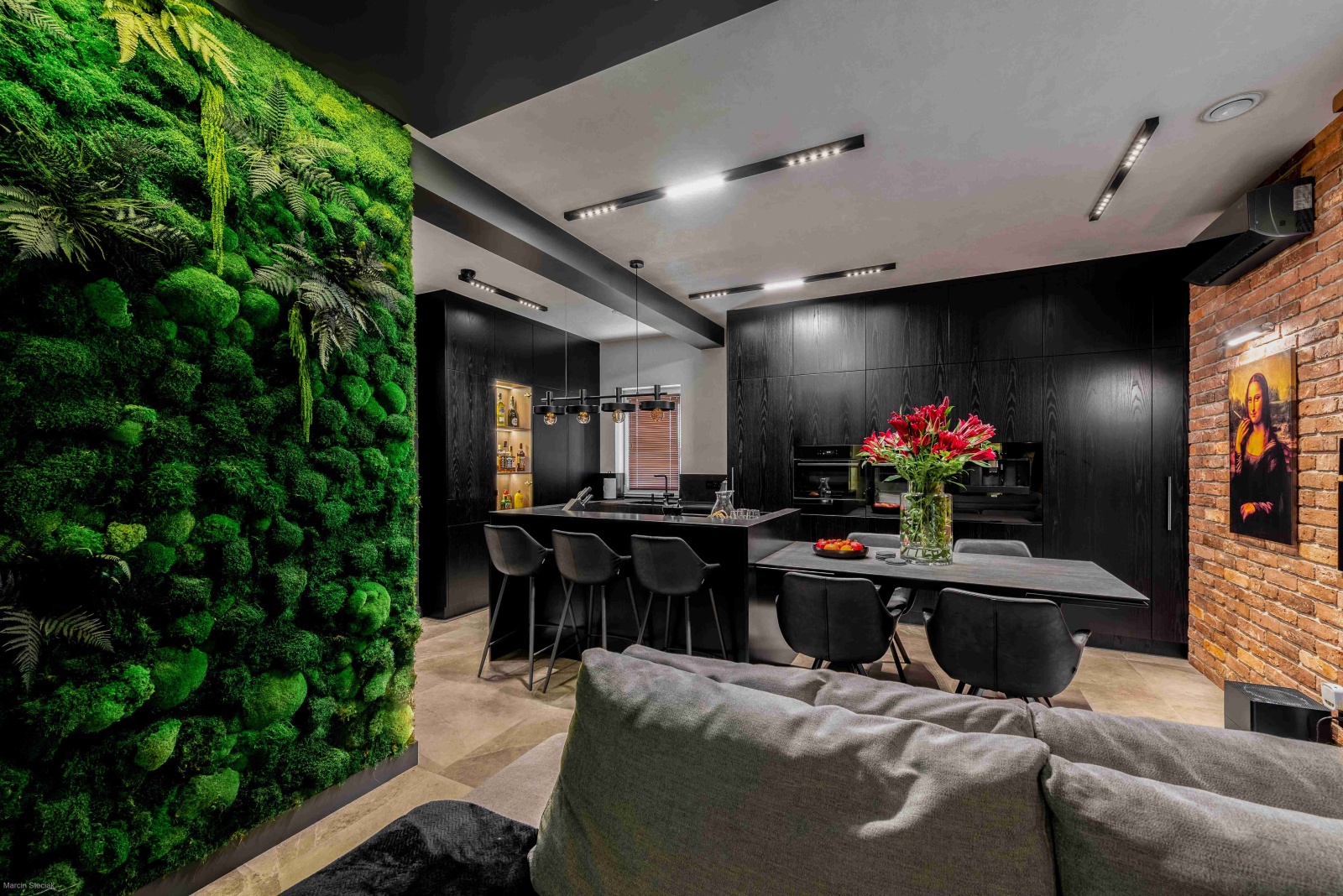 Projektowanie ciemnych wnętrz wymaga uwzględnienia kilku kluczowych czynników, aby osiągnąć pożądany efekt elegancji, harmonii i funkcjonalności. Ważny jest tu dobór zbalansowanych odcieni, które warto zestawiać z jaśniejszymi akcentami, aby uniknąć przytłaczającego efektu. Co więcej, istotną kwestią jest również oświetlenie. Prawidłowo dobrane pozwoli wydobyć głębie, ale też uniknąć efektu przytłoczenia. W projekcie pracowni VIVA DESIGN, zaprojektowane wnętrze o powierzchni 100m2 jest przede wszystkim eleganckie, a za sprawą ściany z ogrodem wertykalnym – nowoczesne.