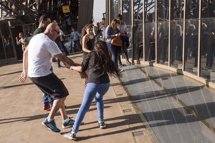 Pierwsze piętro leży na wysokości 60 metrów, więc przezroczysta podłoga daje efekt stąpania w powietrzu nad głowami przechodniów i chodnikami poniżej. Są osoby, które mają lęk wysokości i nie mogą pokonać strachu, wycofują się więc w inne rejony wieży Eiffla.