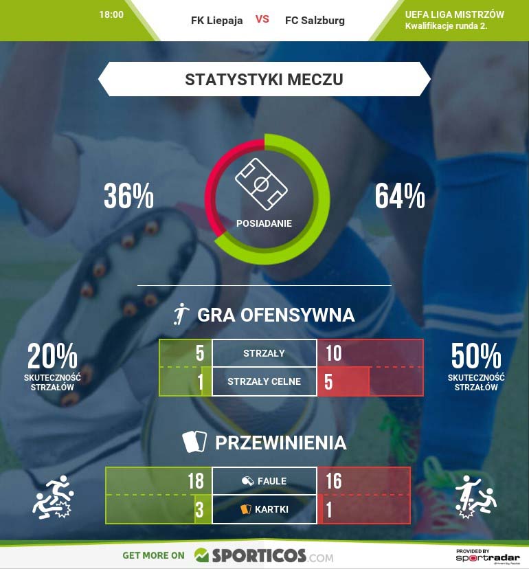 Serwis w sposób kompleksowy zapewni kibicowi wszystko, co ten chciałby wiedzieć o swoim ulubionym sporcie. Statystyki aktualizowane po każdym spotkaniu, ciekawe zestawienia, porównania - znajdziemy to, wchodząc na stronę 24 godziny na dobę. Co więcej, dotyczy to zarówno najpopularniejszych lig świata z angielską i hiszpańską na czele, jak i tych mniej popularnych czy europejskich pucharów - poniżej przykładowa infografika (mecz eliminacji Ligi Mistrzów między FK Liepaja a FC Salzburg).