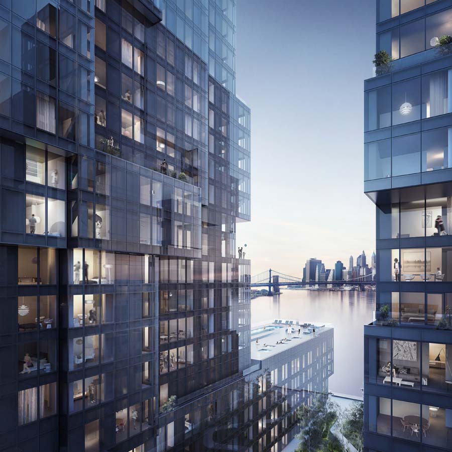 Z wież będzie można podziwiać Most Williamsburg, East River oraz Manhattan. Cała budowla będzie w sumie miała powierzchnię 74 320 metrów kwadratowych, na które złoży się 857 apartamentów mieszkalnych. Dodatkowo planowane jest wybudowanie dwóch basenów czy terenu zieleni. Powierzchnia wspólnego obszaru wyniesie 2 415 metrów kwadratowych.