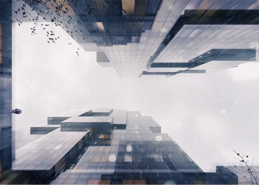 „Wykorzystując dwa standardy podłogowe i układając je w przeciwnych kierunkach wokół centralnej osi, otrzymamy wielowymiarowe fasady, gdzie każda będzie wypełniona „rogami” – tłumaczy przedstawiciel firmy architektonicznej.
