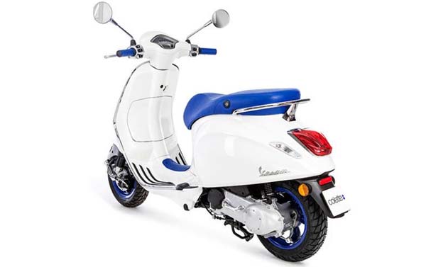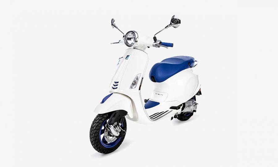 Obie firmy nawiązały współpracę, aby stworzyć niepowtarzalny skuter i trzeba przyznać, że chyba im się udało. Niebiesko-biała maszyna urzeka swoim designem.
